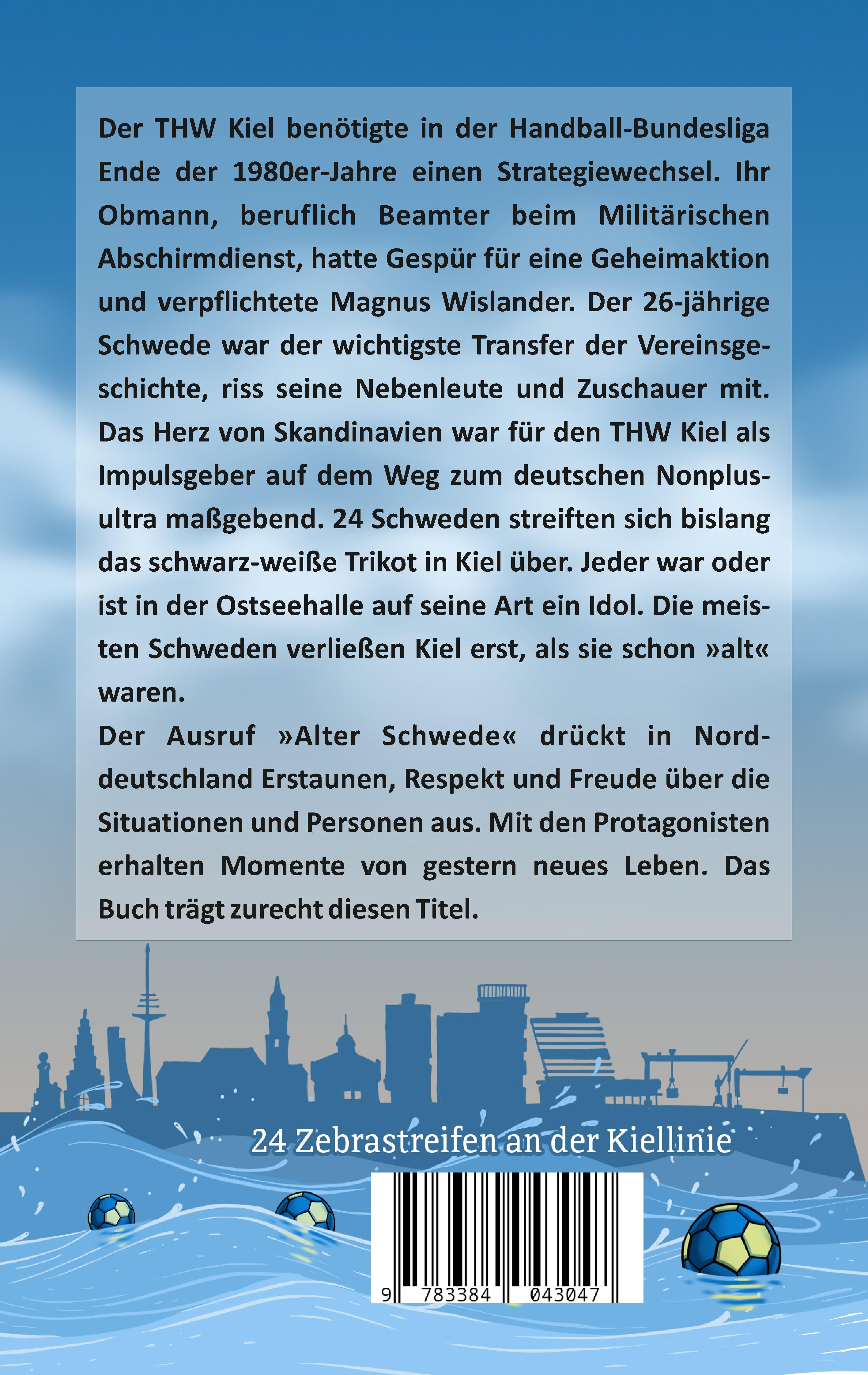 Der THW Kiel benötigte in der Handball-Bundesliga Ende der 1980er-Jahre einen Strategiewechsel. Ihr Obmann, beruflich Beamter beim Militärischen Abschirmdienst, hatte Gespür für eine Geheimaktion und verpflichtete Magnus Wislander. Der 26-jährige Schwede war der wichtigste Transfer der Vereinsgeschichte, riss seine Nebenleute und Zuschauer mit. Das Herz von Skandinavien war für den THW Kiel als Impulsgeber auf dem Weg zum deutschen Nonplusultra maßgebend. 24 Schweden streiften sich bislang das schwarz-weiße Trikot in Kiel über. Jeder war oder ist in der Ostseehalle auf seine Art ein Idol. Die meisten Schweden verließen Kiel erst, als sie schon »alt« waren. Der Ausruf »Alter Schwede« drückt in Norddeutschland Erstaunen, Respekt und Freude über die Situationen und Personen aus. Mit den Protagonisten erhalten Momente von gestern neues Leben. Das Buch trägt zurecht diesen Titel.